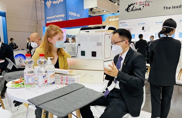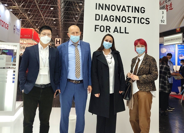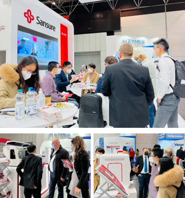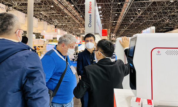 在PA视讯电子展台,“全自动解决方案”“半自动解决方案”“新冠整体解决方案”,以最大程度满足不同国家和地区客户、不同应用场景检测需求的特点,获得了众多来访国际客户的好评。尤其是iPonatic四通道产品,以其便捷、易操作、检测时间快、检测项目多等优势吸引了会场一大波新老“粉丝”的目光。